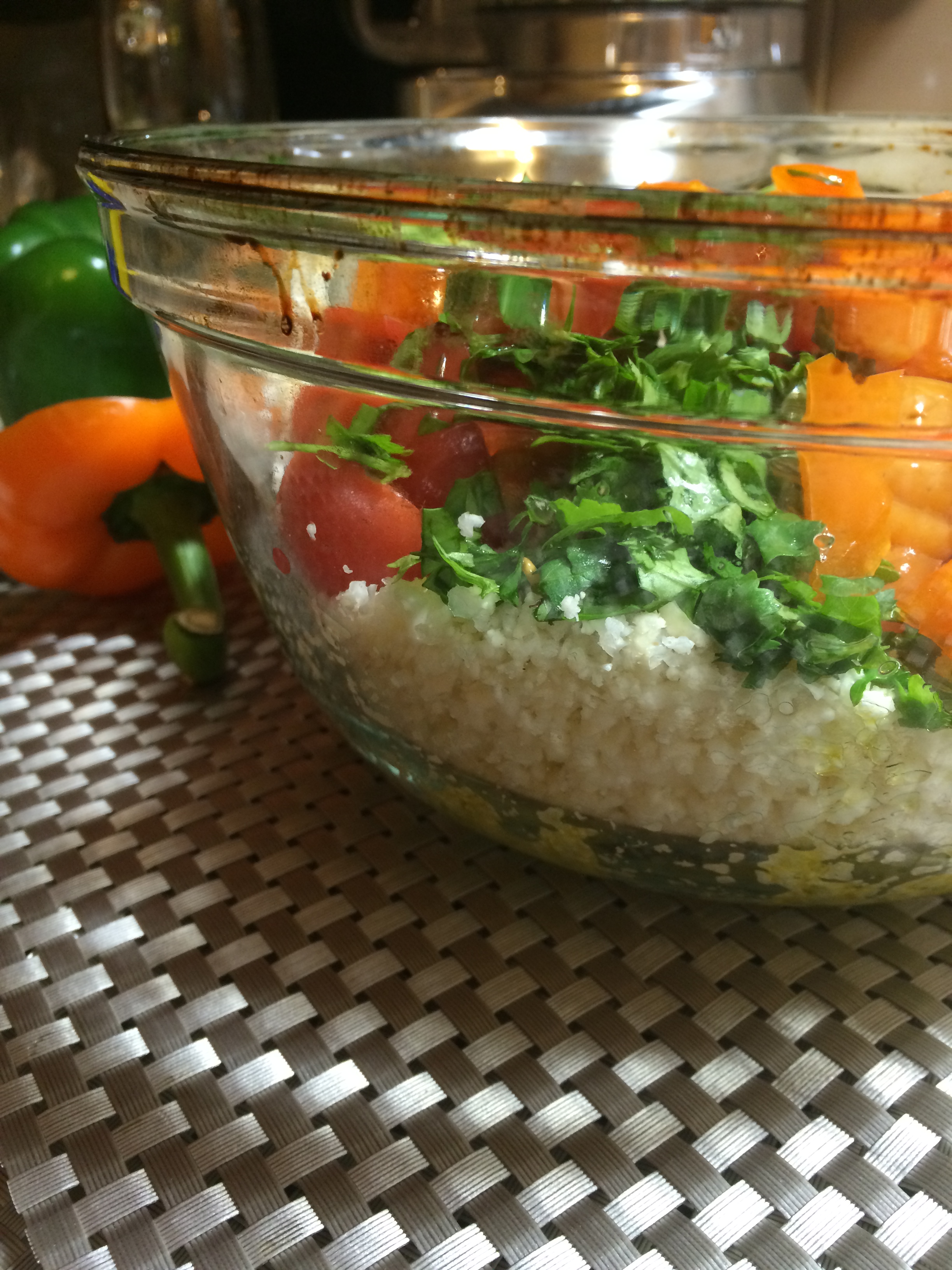 I actually hardly ever cook using cous cous. I’d rather use quinoa since it’s gluten free and healthier, but there is definitely something about the texture of cous cous that makes it pretty ideal for meals. That’s why I was thrilled to discover a cous cous recipe that didn’t call for cous cous at all. You can easily use cauliflower instead for an all-vegetarian and gluten free dish that is just. so. good.