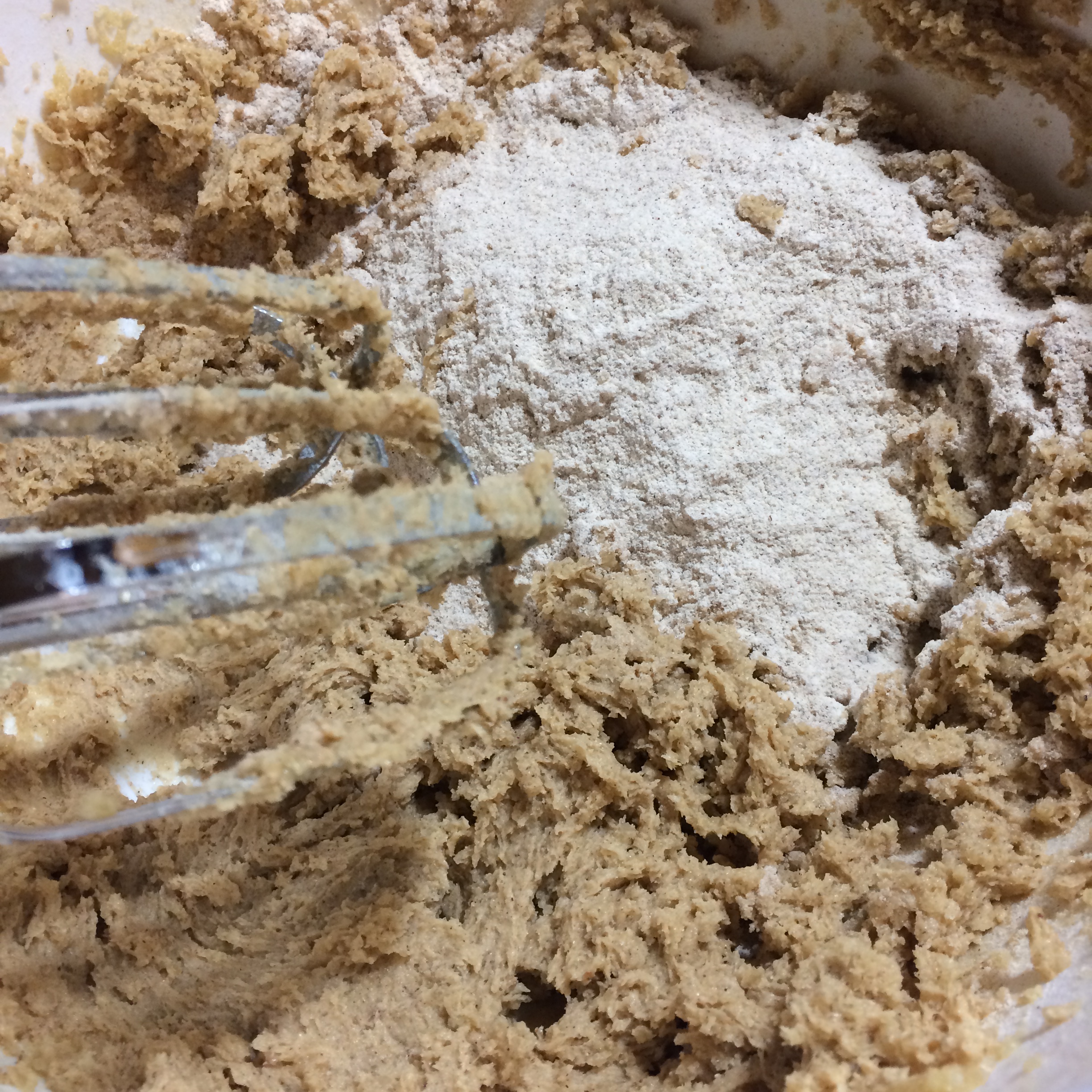 Add the egg and beat again at a medium-high speed until light and fluffy in texture. Reduce blender speed to low and slowly add the dry ingredients, continuing to blend until combined well.