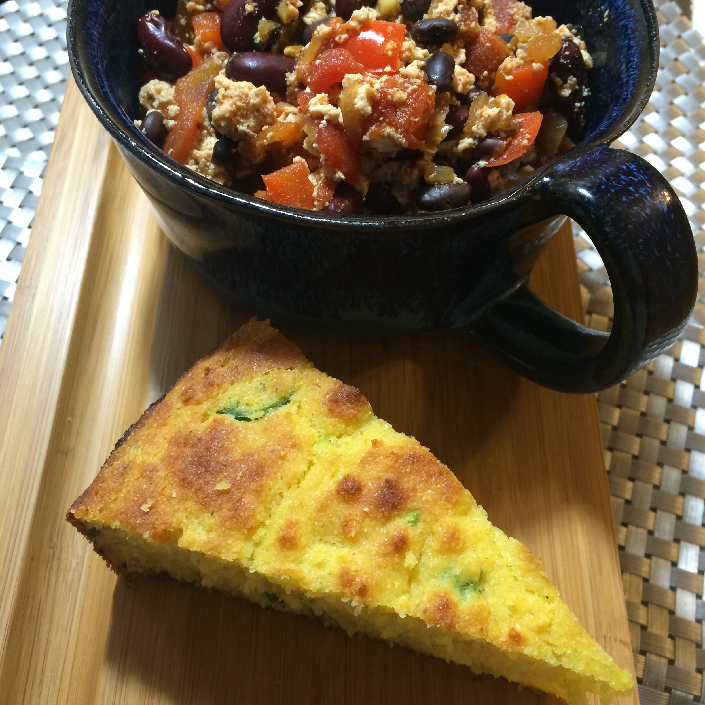 Tofu Honey Chili with Gluten Free Jalapeno Cornbread