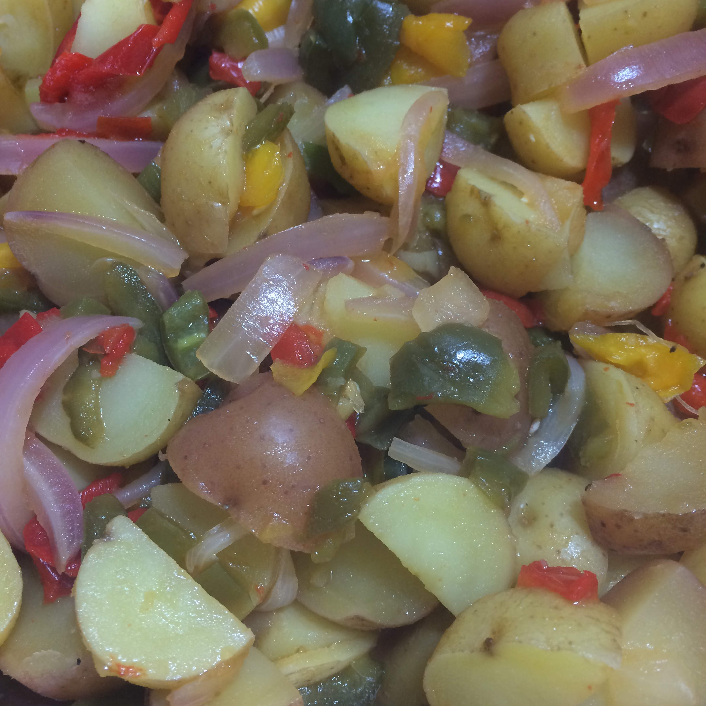 Combine the potatoes and pepper/spice mixture. Stir well.