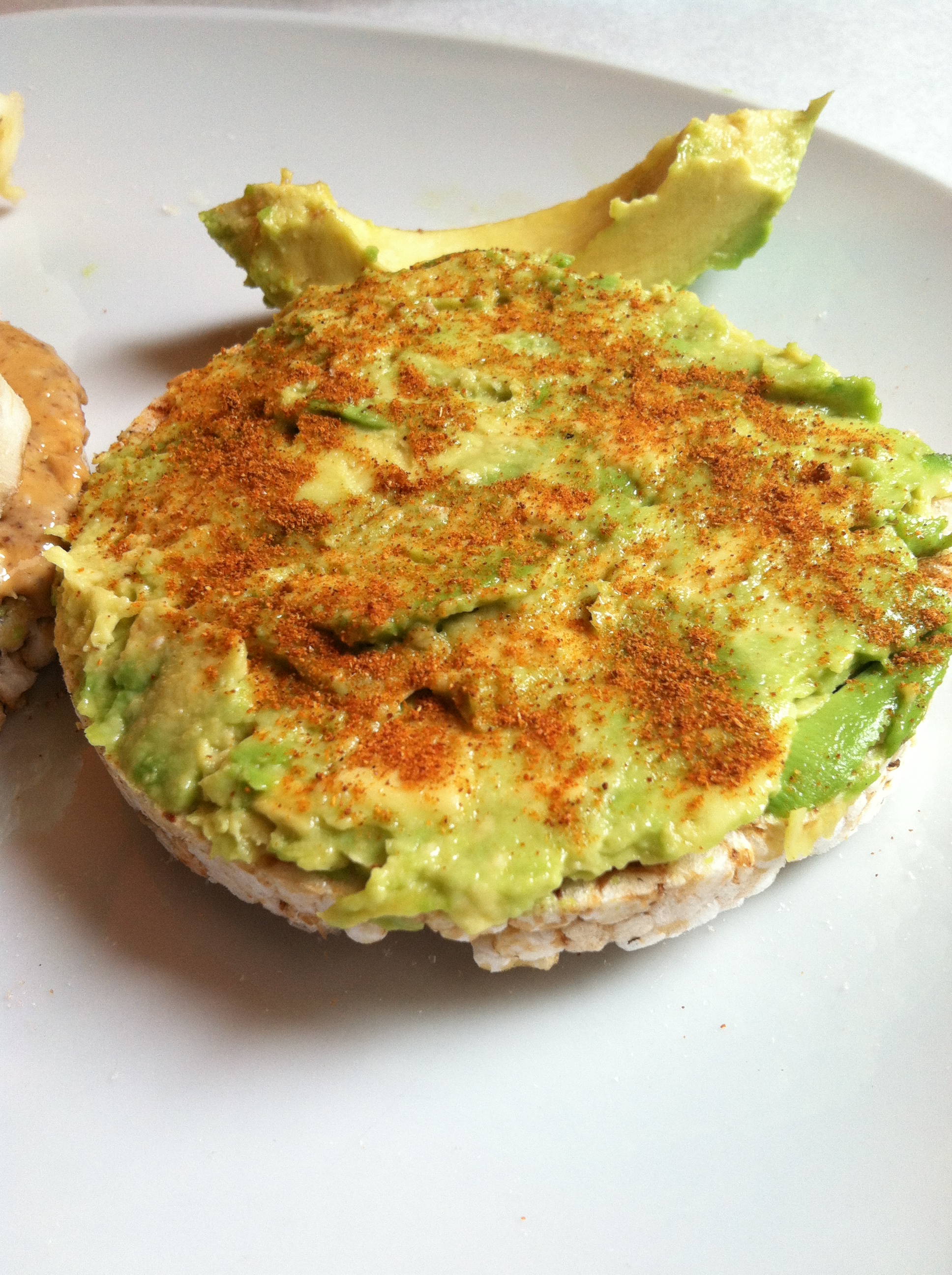 Pro Tip: Every other day (or when I run out of my avocado supply) I use almond butter and sliced banana with a touch of honey on the rice cakes instead. It’s all very yummy and easy to do!