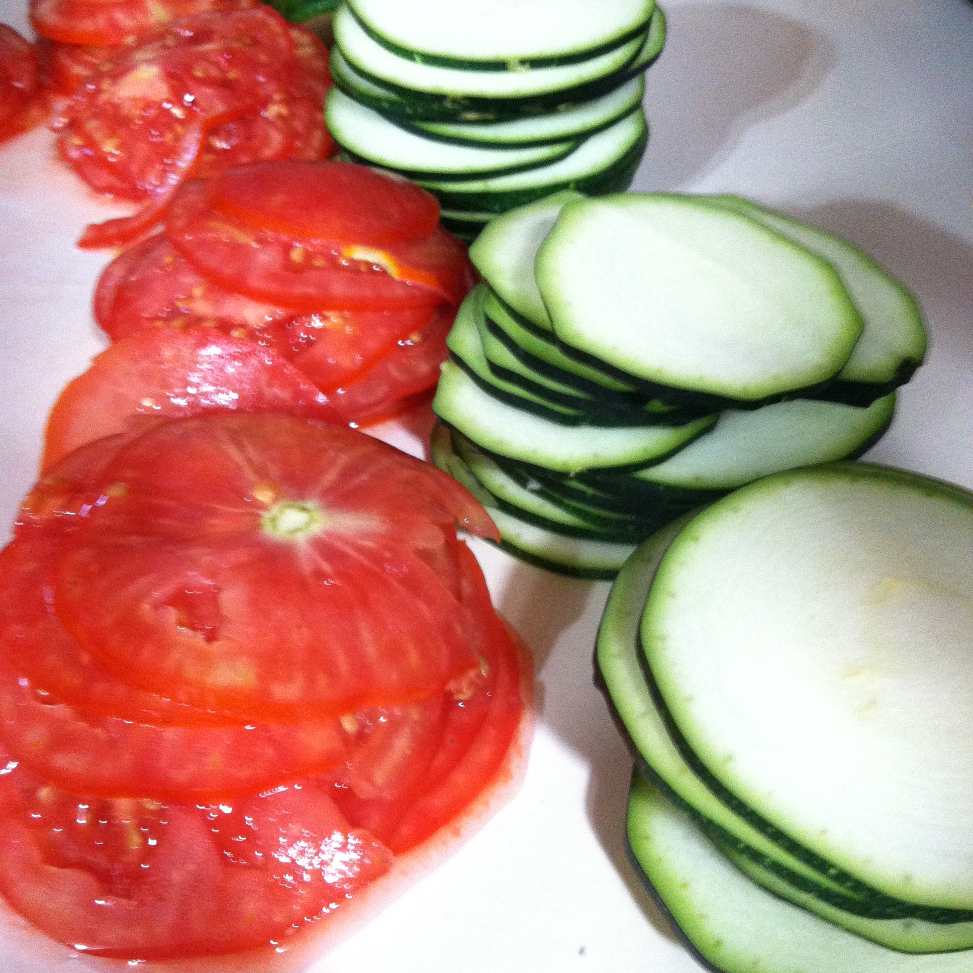 - About a pound of zucchini and summer squash sliced into thin rounds (I used a mandolin for this)